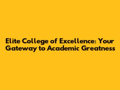 Elite College Of Excellence: Your Guide To Academic Success