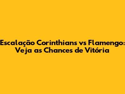 Escalação Corinthians Vs Flamengo: Veja As Chances De Vitória