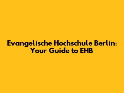 Welcome, guys! Today, we're diving deep into everything you need to know about the Evangelische Hochschule Berlin (EHB). Whether you're a prospective student, a current attendee, or just curious about this unique institution, this guide is designed to provide you with a comprehensive overview. We’ll explore its history, academic programs, campus life, and what makes EHB a standout choice for higher education. So, let’s get started!
