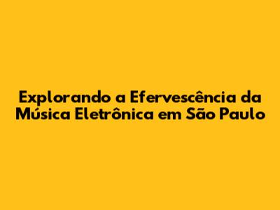 Explorando A Efervescência Da Música Eletrônica Em São Paulo