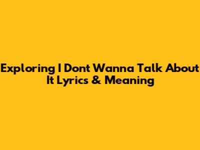 Exploring 'I Don't Wanna Talk About It' Lyrics & Meaning