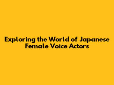 Exploring The World Of Japanese Female Voice Actors