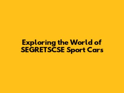 Exploring The World Of SEGRETSCSe Sport Cars