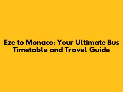 Eze To Monaco: Bus Timetable & Easy Travel Guide