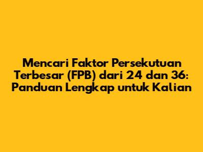 Halo, guys! Pernah nggak sih kalian bingung pas lagi ngerjain soal matematika yang nyuruh nyari 'faktor dari 24 dan 36'? Tenang, kalian nggak sendirian! Banyak banget yang masih kebingungan sama konsep faktor dan cara nyari FPB (Faktor Persekutuan Terbesar). Nah, di artikel ini, kita bakal kupas tuntas sampai ke akar-akarnya biar kalian semua pada jago dan nggak salah lagi. Siap? Yuk, kita mulai petualangan kita ke dunia per-faktor-an!