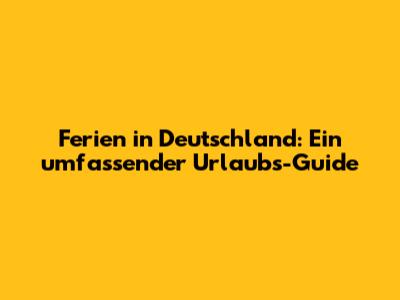 Ferien In Deutschland: Ein Umfassender Urlaubs-Guide