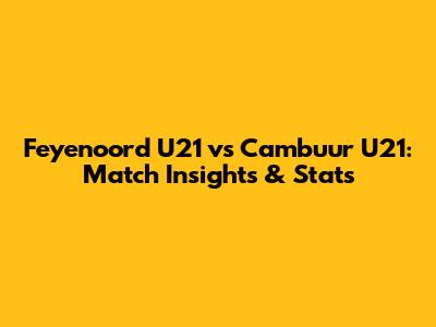Feyenoord U21 Vs Cambuur U21: Match Insights & Stats