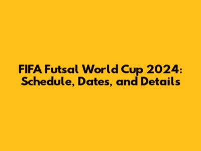 FIFA Futsal World Cup 2024: Schedule, Dates, And Details