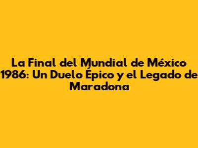 La final de 1986 consolidó a Diego Armando Maradona como una leyenda inmortal. Su actuación en ese torneo, con cinco goles y una serie de asistencias cruciales, es considerada por muchos como la mejor actuación individual en la historia de los Mundiales. Más allá de los títulos, Maradona se convirtió en un símbolo de esperanza y resistencia para Argentina y para muchos otros países. Su juego, lleno de magia, rebeldía y pasión, trascendió el deporte y se convirtió en un fenómeno cultural. El Mundial de México '86 no solo es recordado por la gesta argentina, sino por la forma en que Maradona cautivó al mundo. Su liderazgo, su carisma y su increíble talento lo convirtieron en el protagonista absoluto de un torneo que se jugó bajo el sol azteca. Fue un Mundial que demostró que, a veces, un solo jugador puede inspirar a todo un equipo y a una nación entera a alcanzar la gloria. La Albiceleste de 1986, con Maradona a la cabeza, es una de las selecciones más queridas y recordadas de la historia.