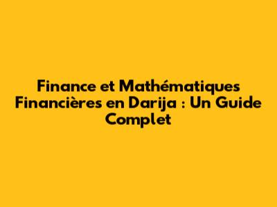 Mathématiques Financières en Darija : Les Concepts Clés (Financial Mathematics in Darija: Key Concepts)