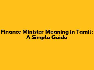 Finance Minister Meaning In Tamil: A Simple Guide