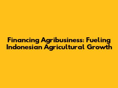 Financing Agribusiness: Boosting Indonesian Agricultural Growth