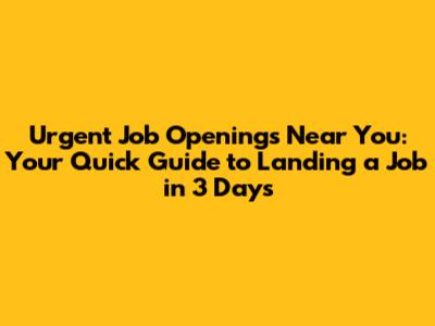 Finding urgent job vacancies near me and landing a job in three days might seem like a challenge, but it is absolutely possible with the right mindset and strategies. Focus on the right resources, craft a compelling resume and cover letter, ace the interview, and be proactive in your search. Good luck, and happy job hunting! You got this!