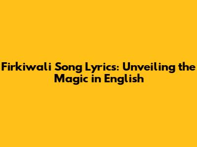 Hey music lovers! Ever gotten lost in a song and felt like you were transported to another world? That's the vibe we're diving into today with the Firkiwali song! This article is all about unpacking the Firkiwali song lyrics in English, exploring the nuances of its meaning, and understanding the magic woven into the music. We'll be breaking down the song's themes, its cultural significance, and why it's resonated with so many people. Get ready to have your ears and heart engaged as we discover the secrets of this captivating track. This song is an adventure to be shared and a tale of love to be told!