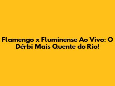 Flamengo X Fluminense Ao Vivo: O Dérbi Mais Quente Do Rio!