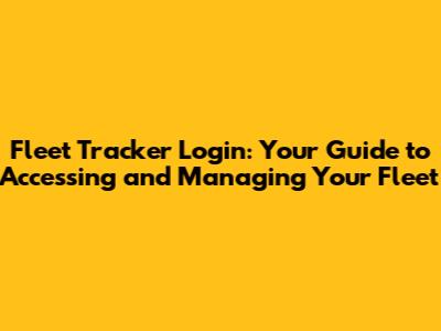 Fleet Tracker Login: Your Guide To Accessing And Managing Your Fleet