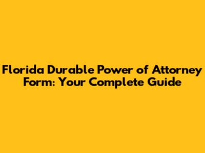 Florida Durable Power Of Attorney Form: Your Complete Guide