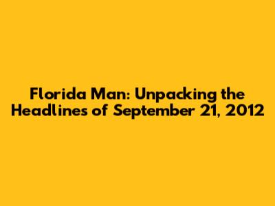 Hey guys, let's dive deep into a truly wild day in the annals of internet legend: September 21, 2012. You know the drill – the "Florida Man" headlines. It’s a phenomenon that’s become a meme, a cultural touchstone, and often, a source of sheer bewilderment. This particular date, September 21, 2012, has its own special place in this bizarre corner of the news cycle. We’re not just going to skim the surface; we’re going to unpack some of the most memorable, and frankly, unbelievable, stories that emerged from the Sunshine State on this fateful Friday. Get ready, because it’s going to be a ride!