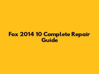 Fox 2014 10 Repair Guide: Step-by-Step