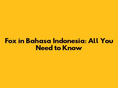 Fox In Bahasa Indonesia: All You Need To Know