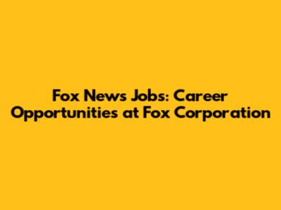 Fox News Jobs: Career Opportunities At Fox Corporation