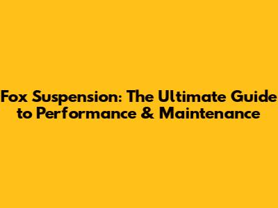Fox Suspension: The Ultimate Guide To Performance & Maintenance