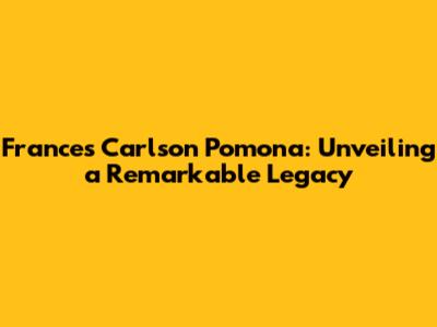 Frances Carlson's Legacy In Pomona: A Deep Dive