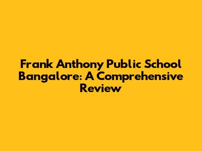 Frank Anthony Public School Bangalore: A Detailed Review