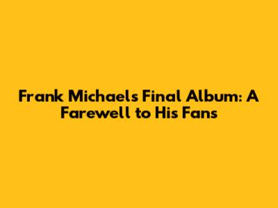 Frank Michael's Final Album: A Farewell To His Fans