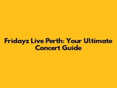 Fridayz Live Perth: Ultimate Guide