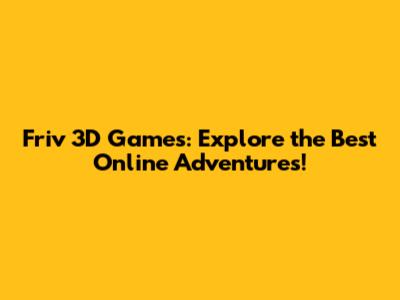 Friv 3D Games: Explore The Best Online Adventures!
