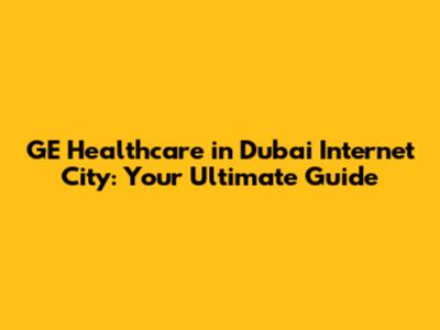 GE Healthcare In Dubai Internet City: A Comprehensive Guide