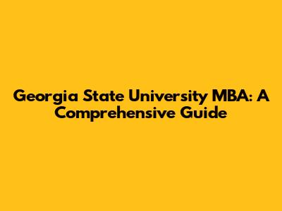 Georgia State MBA: A Comprehensive Guide