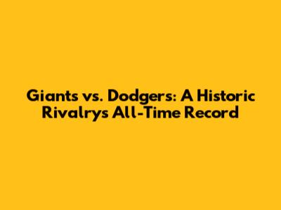 Giants Vs. Dodgers: All-Time Series Record