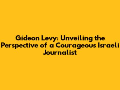 Gideon Levy: Unveiling The Perspective Of A Courageous Israeli Journalist