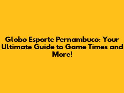 Globo Esporte Pernambuco: Your Guide To Game Times & More!