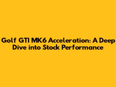 Golf GTI MK6 Acceleration: A Deep Dive Into Stock Performance