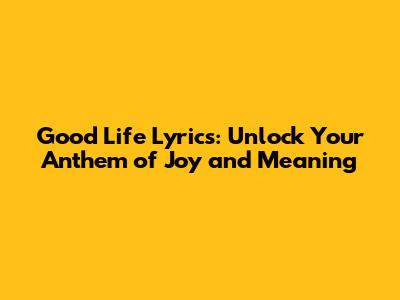 Good Life Lyrics: Unlock Your Anthem Of Joy And Meaning