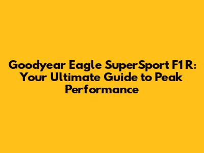 Goodyear Eagle SuperSport F1 R: Ultimate Guide