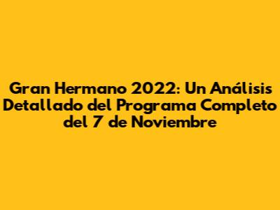Gran Hermano 2022: Análisis Del Programa Completo (07/11)