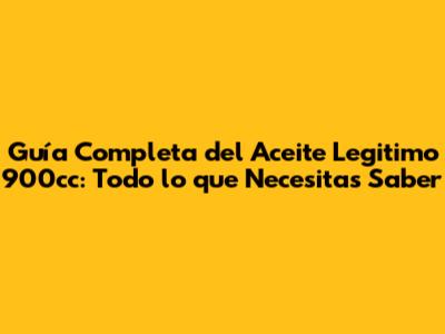 Guía Completa Del Aceite Legitimo 900cc: Todo Lo Que Necesitas Saber