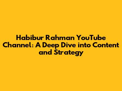 Habibur Rahman: YouTube Channel Insights & Growth