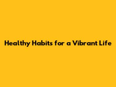 Healthy Habits For A Vibrant Life