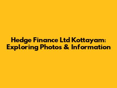 Hey there, finance enthusiasts and curious minds! Ever found yourself searching for Hedge Finance Ltd Kottayam photos? Well, you're in the right place! We're diving deep into the visual world of Hedge Finance Ltd in Kottayam, exploring what we can glean from photos, and sharing some cool insights along the way. Get ready to embark on a journey that's both informative and visually engaging. Let's get started, shall we?