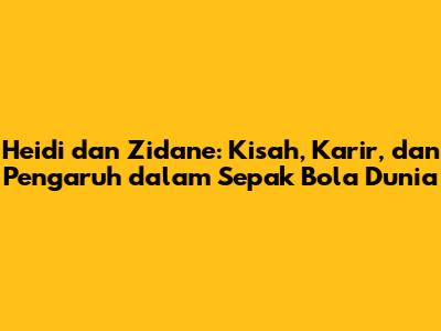 Heidi dan Zidane adalah dua nama yang tak terpisahkan dari dunia sepak bola, meskipun mereka berasal dari latar belakang yang berbeda. Kisah mereka, meskipun tidak saling terkait secara langsung, menawarkan wawasan menarik tentang perjalanan karir, prestasi, dan pengaruh terhadap sepak bola dunia. Artikel ini akan membahas secara mendalam tentang keduanya, mulai dari biodata, perjalanan karir, prestasi gemilang, hingga dampak mereka di dunia sepak bola.