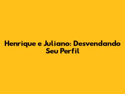 Henrique E Juliano: Desvendando Seu Perfil