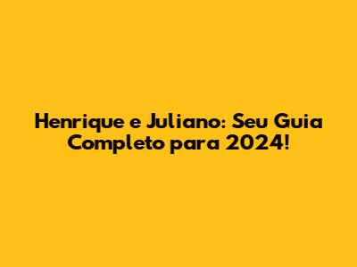 Hey, galera! Preparados para mais um ano de sofrência e alegria com Henrique e Juliano? 2024 promete ser épico para a dupla sertaneja, e este guia completo vai te deixar por dentro de tudo: shows, músicas novas, novidades e muito mais! Bora lá?