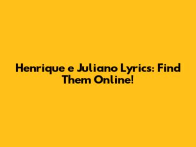 Henrique E Juliano Lyrics: Find Them Online!