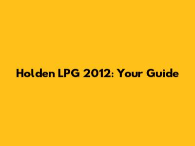 Holden LPG 2012: Your Guide