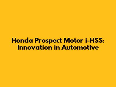 Honda Prospect Motor I-HSS: Innovation In Automotive